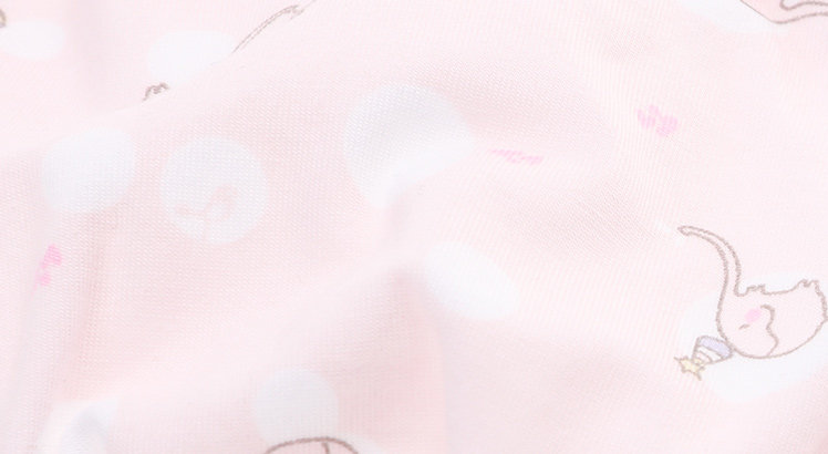 采用温和柔软的莫代尔混纺面料,质地柔软细腻,舒爽绵柔,杯面装饰卡通小象印花,凸显女孩的活泼可爱。